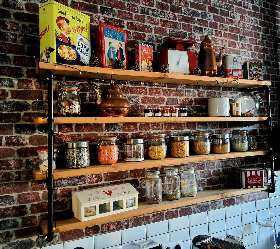 Avant d'obtenir cette ambiance d'antan il a fallu tout repenser dans cette cuisine de longère qui a l'origine était une simple chambre. Du sol au plafond, tout a été revu. L'originalité est dans le plafond cathédrale laissant une sensation de grandeur quand on arrive dans cette pièce. Puis nous avons repris les codes de la cuisine aux fameuses poignées coquilles rappelant le style "Farm House". Enfin, des objets ont été spécialement chinés pour décorer la pièce.